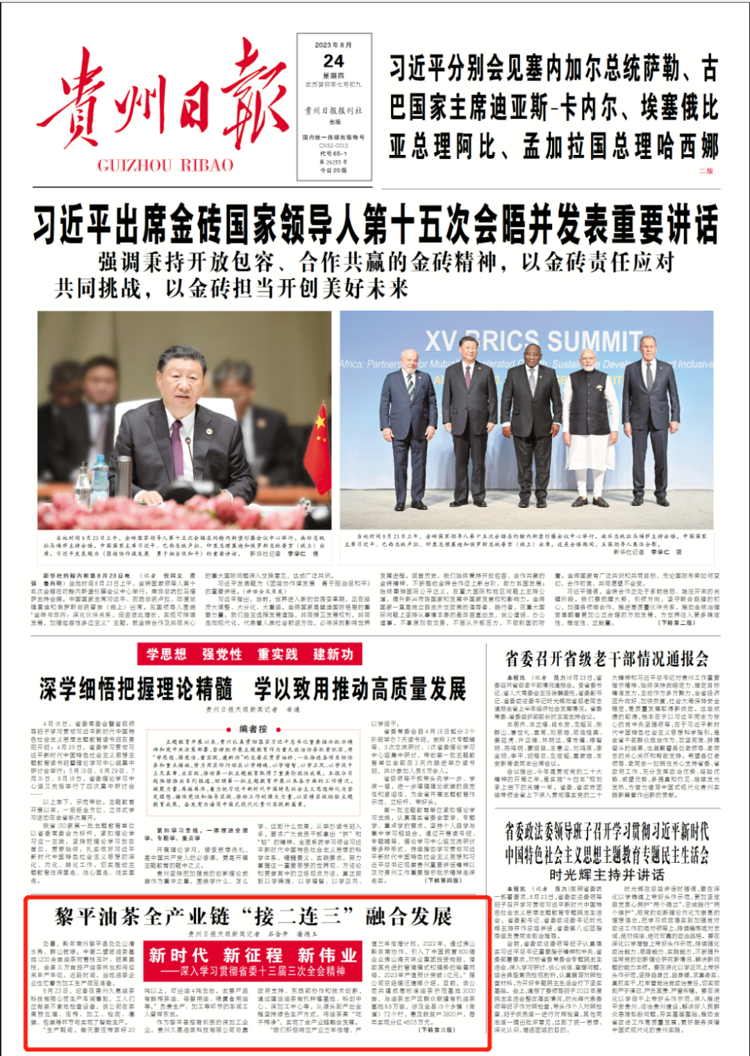 2023年8月23日,省委書記、省人大常委會主任徐麟,深入黔東南州黎平縣調(diào)研,他來到我司貴州久晟油茶科技有限公司進(jìn)行實地考察,了解企業(yè)發(fā)展歷程和鄉(xiāng)村振興成果。黎平縣是全國首批100個油茶產(chǎn)業(yè)重點發(fā)展線,徐書記實地參觀生產(chǎn)車間、觀看產(chǎn)品展示、了解市場銷售情況,勉勵我司發(fā)揮龍頭作用,加強(qiáng)新品研發(fā)、確保產(chǎn)品質(zhì)量、積極開拓市場,促進(jìn)更多群眾豐收致富。【聚焦油茶產(chǎn)業(yè),助力鄉(xiāng)村發(fā)展】